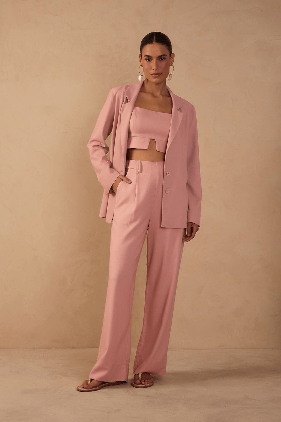 DICA DRESS: Invista no top linho recorte barra e no blazer linho botão manga para um trijunto perfeito.