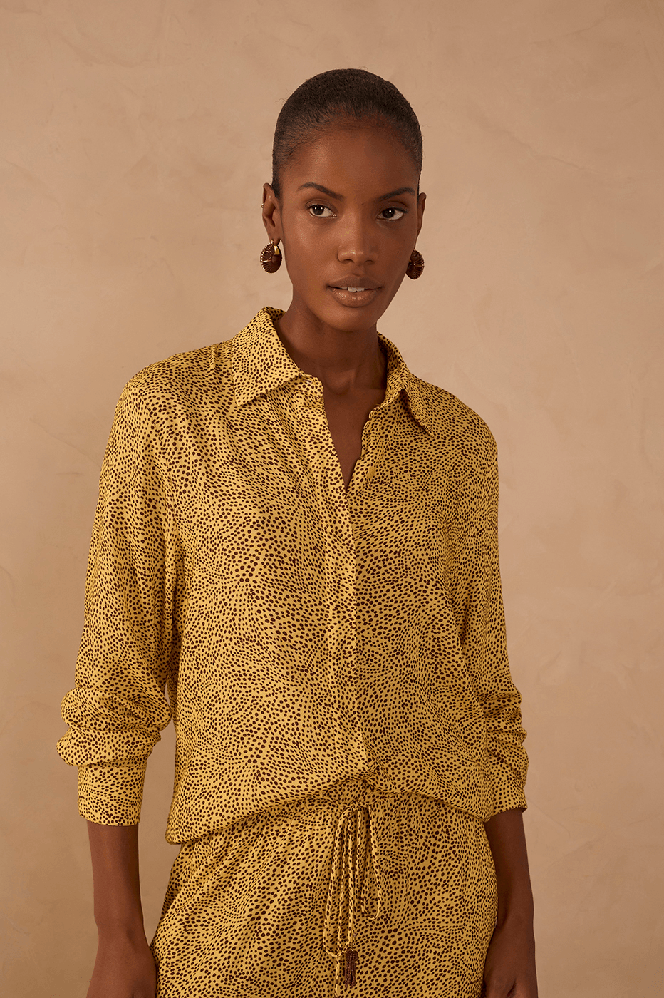 camisa Estampa Gotas combina leveza e modernidade em uma peça versátil. Confeccionada em tecido fresco, apresenta estampa inspirada no tema Gotas, perfeita para looks de verão, passeios ou produções casuais. Ideal para combinar com calças, saias ou shorts, garantindo conforto e um visual descontraído.
