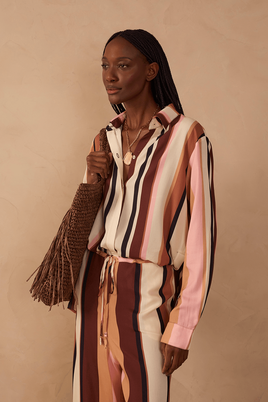 Camisa Estampa Listra Dunas combina elegância e frescor em uma peça versátil e moderna. Confeccionada em tecido leve e de toque suave, apresenta estampa exclusiva inspirada nas formas orgânicas das dunas e nas cores suaves do verão. Com caimento fluido e modelagem confortável, é ideal para compor looks sofisticados e descontraídos com um toque natural.
