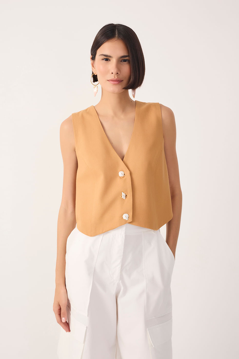 Colete Linho Botões Concha é a combinação perfeita entre sofisticação e leveza. Confeccionado em linho de toque suave, traz modelagem estruturada e botões em formato de concha que adicionam um charme sutil e natural ao visual. Versátil e elegante, pode ser usado aberto ou fechado, compondo looks casuais ou sofisticados com frescor e estilo.