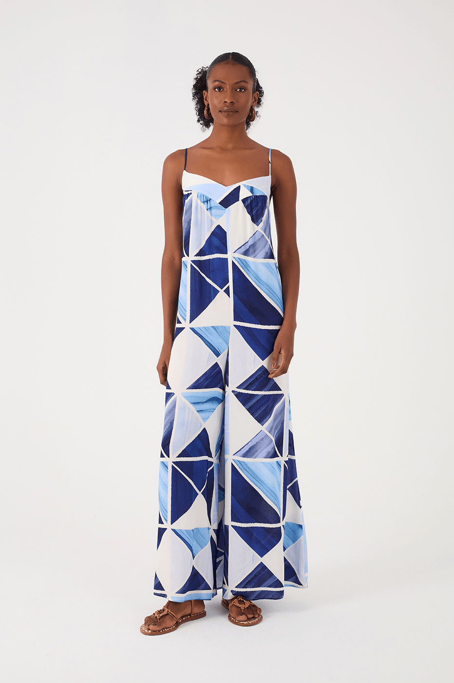 macacão estampa mosaico é produzido em crepe, possui modelagem soltinha, alças finas reguláveis e pala no decote. Perfeito!