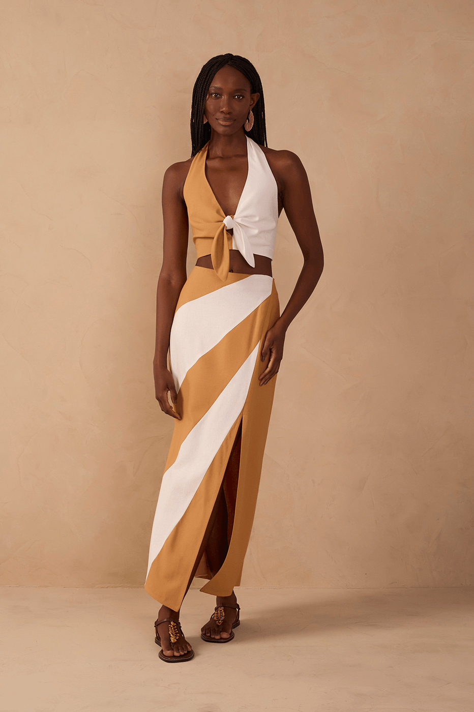 A saia Midi Linho Bicolor é a peça perfeita para quem busca sofisticação com um toque contemporâneo. Confeccionada em linho leve e estruturado, apresenta design bicolor que valoriza o visual com estilo único. Ideal para produções casuais ou elegantes, garantindo frescor, conforto e versatilidade em qualquer ocasião.