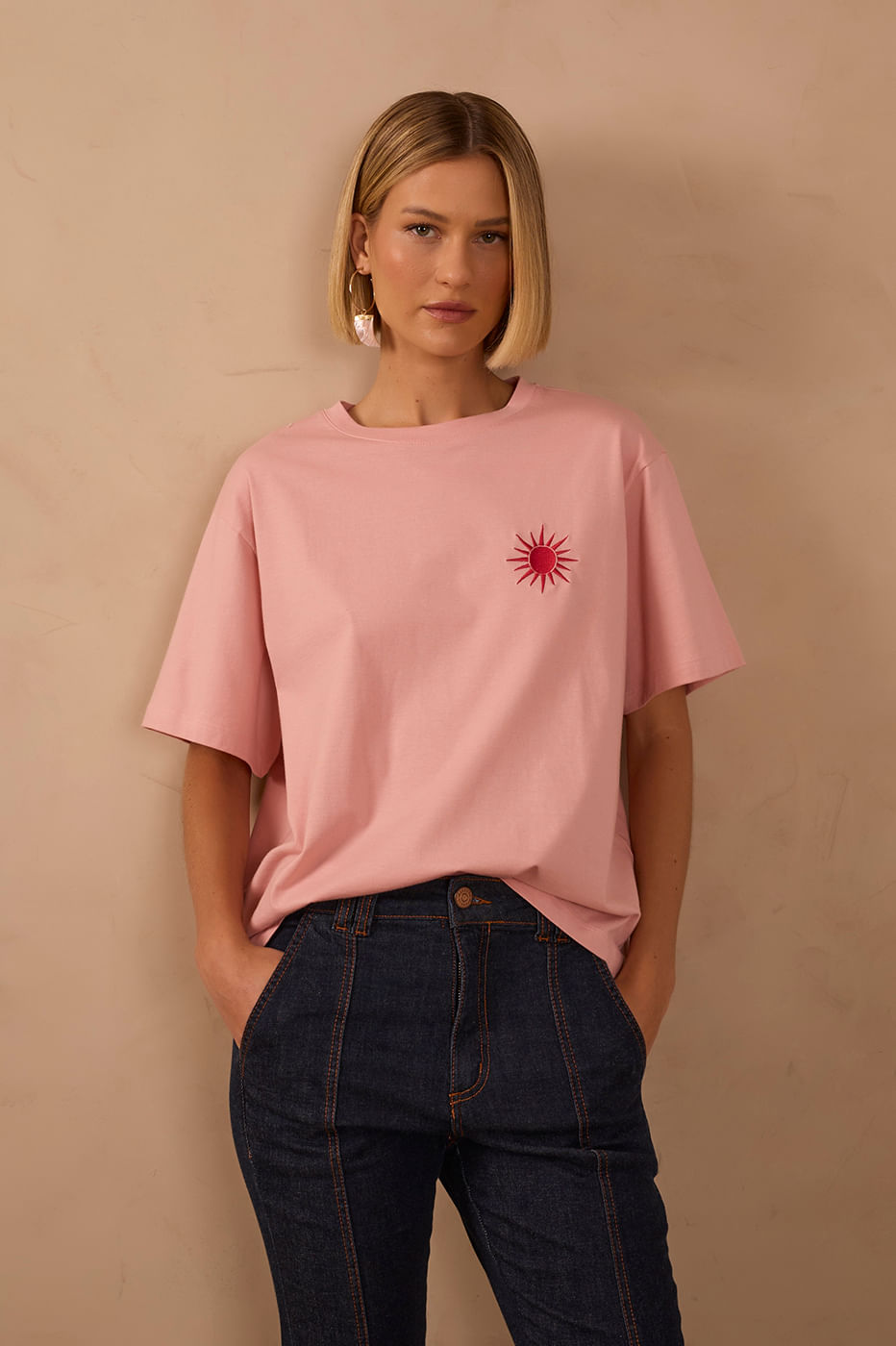 Em uma edição especial do Outubro Rosa, a Dress To se une à Fundação Laço Rosa para celebrar a força e a luz de cada mulher. A t-shirt traz o sol como protagonista — símbolo de esperança, coragem e recomeços — em um design exclusivo que traduz a essência da campanha. Com caimento soltinho, gola redonda e comprimento levemente alongado, é uma peça versátil e cheia de significado. Parte das vendas será revertida para a Fundação Laço Rosa, apoiando mulheres em tratamento e iniciativas que transformam vidas.