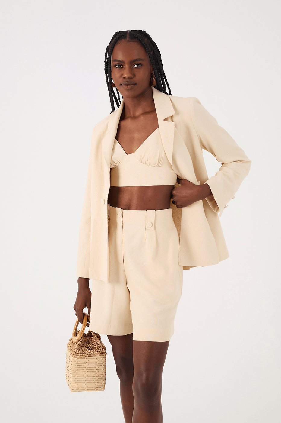Sabe aquela peça que vai bem em diversas ocasiões? O top recorte busto é produzido em linho possui alças finas ajustáveis, decote V, comprimento cropped e lastex nas costas para um caimento perfeito ao corpo.