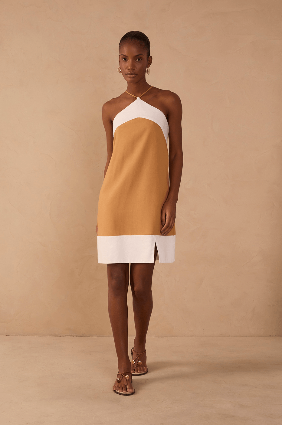 Vestido Curto Linho Bicolor
